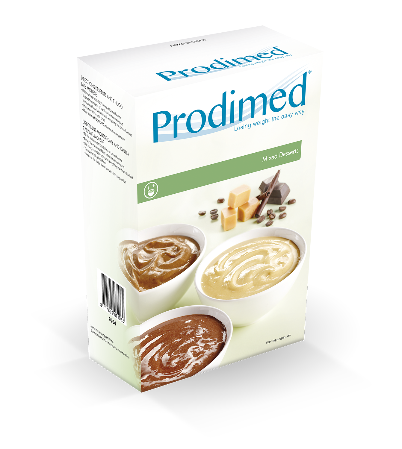 A válogatás doboz : csokoládés, kávé habdesszert, vanília habdesszert; banán desszert, vanília-karamell desszerteket tartalmaz.